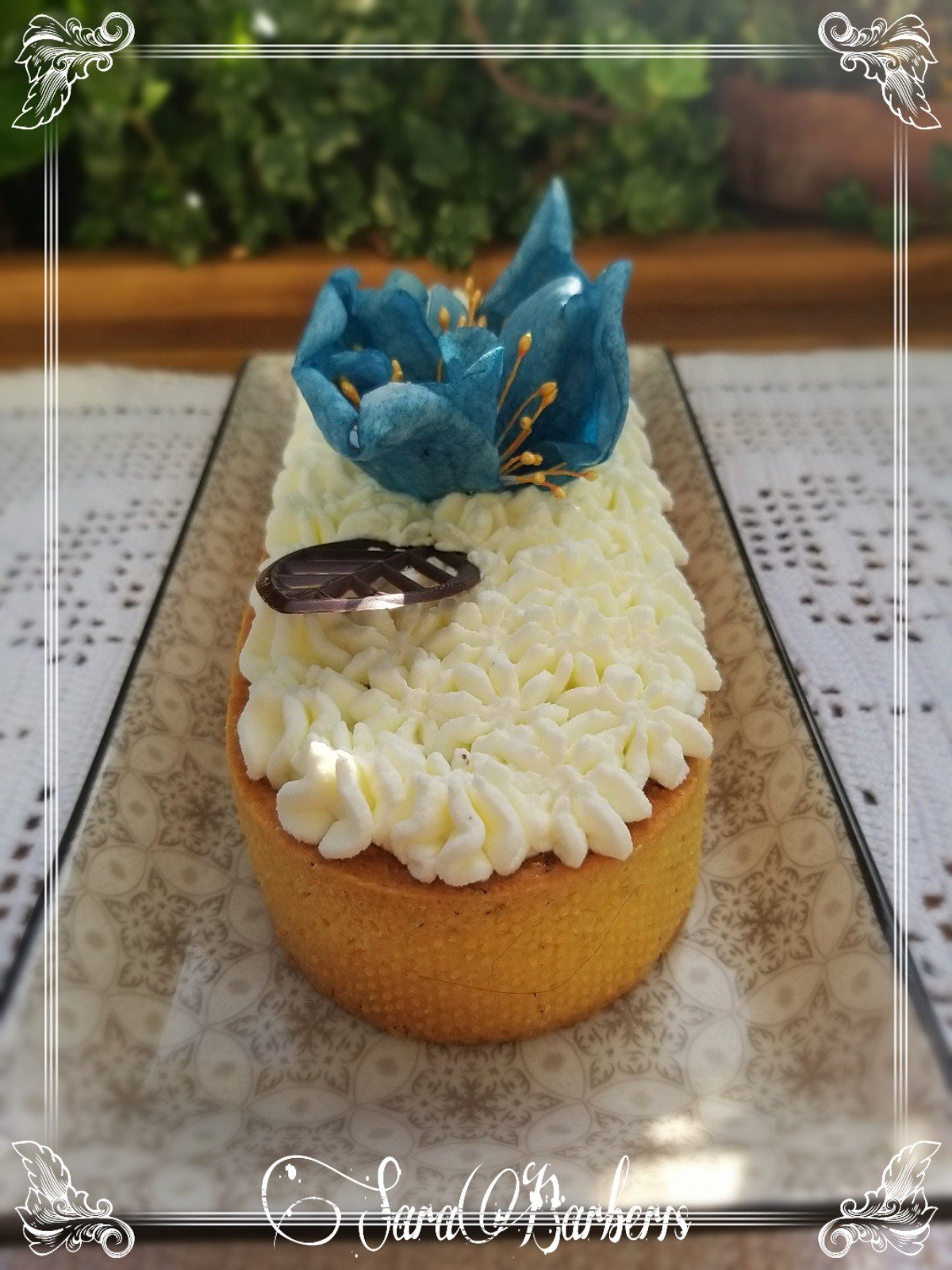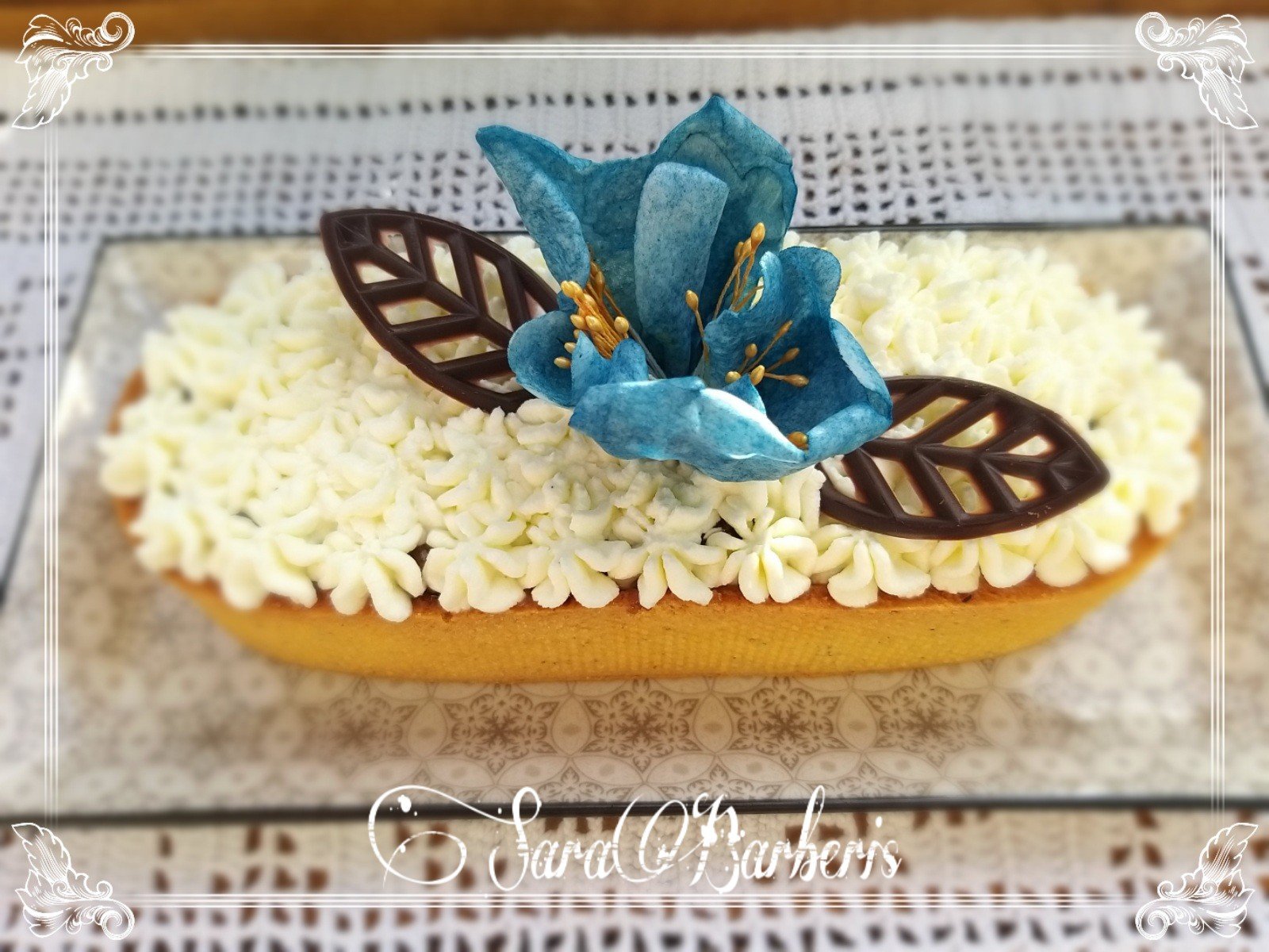 Ho cotto le banane con lo zucchero poi ho sfumato con il liquore e ho messo dentro al guscio, ho messo sopra 3 dischi di frolla al cioccolato tipo pandistelle e ho decorato con ciuffi di panna alla vaniglia del Madagascar