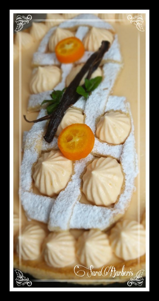 Ho usato i tapis relief per creare il bordo, messo abbondante marmellata di arance e fatta cuocere in forno Electrolux KOAAS31CX caldo a 180 gradi in ventilato (in questi forni in realtà è un termoventilato) per 10 minuti poi abbassate a 160 gradi e proseguite la cottura per altri 15/20 minuti.